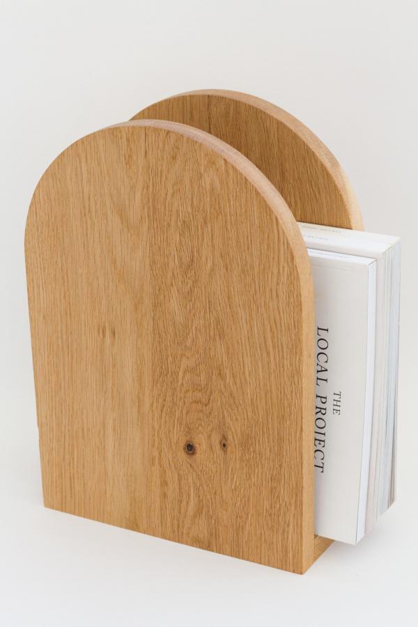 Its arch shape creates a soft contrast to make a feature of your magazines and records.